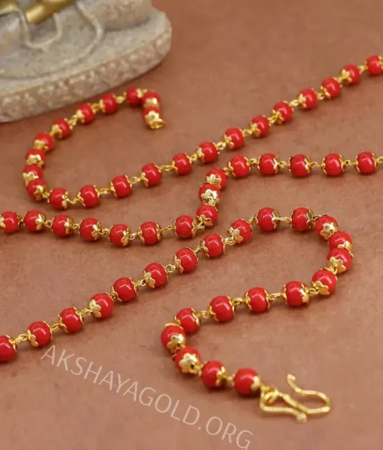 24″ One Gram Gold Plated Traditional RED PAVALAM MANI Maalai Chains for Ladies 28A-GNT