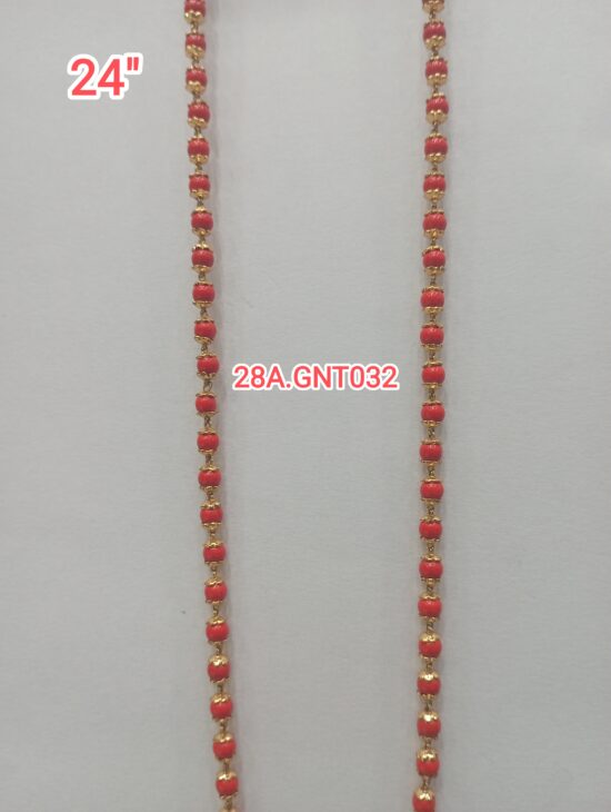 24″ One Gram Gold Plated Traditional RED PAVALAM MANI Maalai Chains for Ladies 28A-GNT