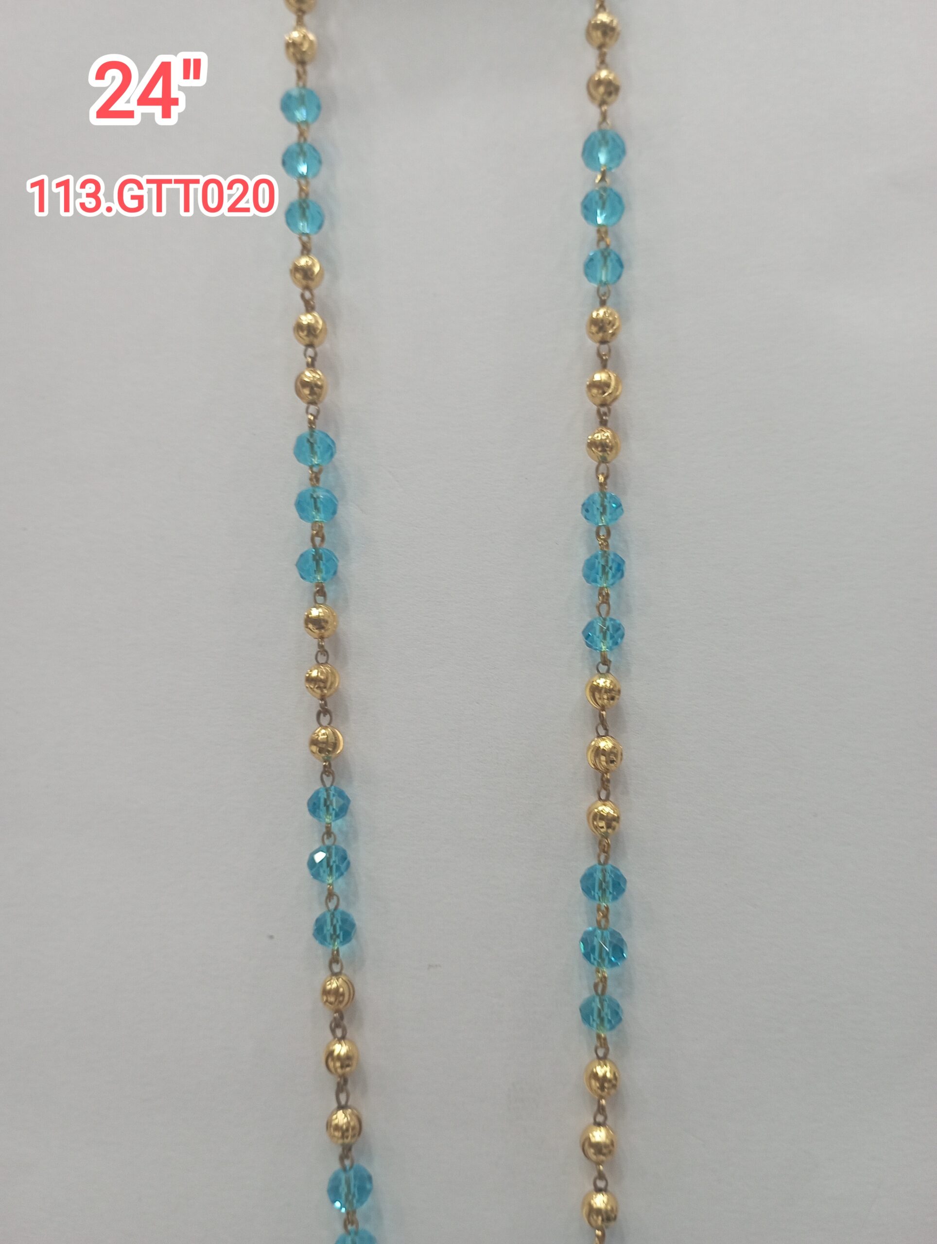 24″ One Gram Gold Plated Traditional Trendy Stylish GOLD SWISH BLUE BEADS / MANI Chains for Ladies 113-GTT