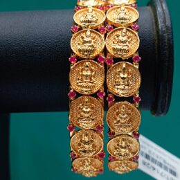 One Gram Gold Plated Traditional Lakshmi Coin RUBY AD STONE Bangles 714/LOT