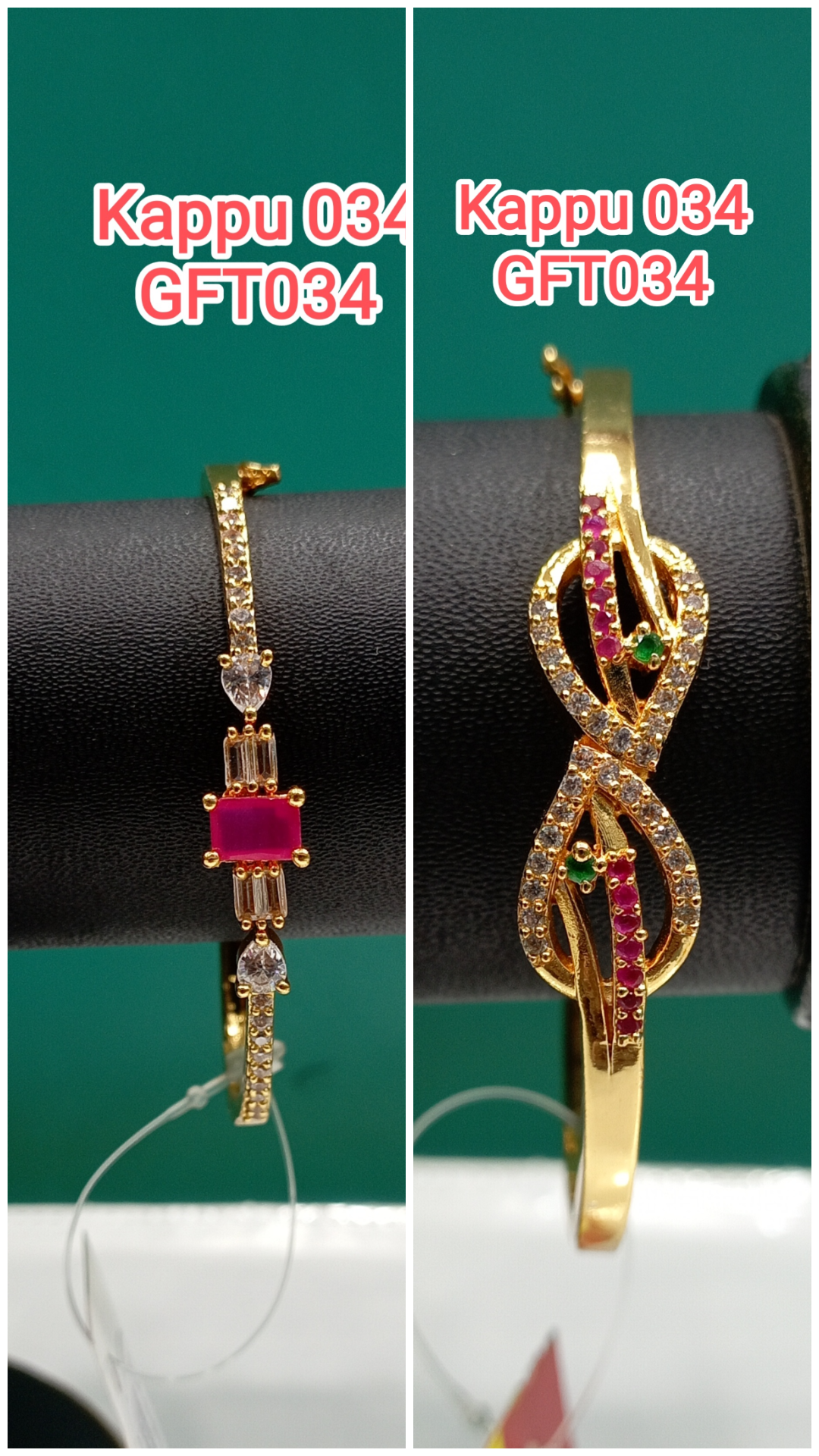 New Model Gold Plated Ruby AD Stone Kappu Bracelet Designs for Girls 034/GFT