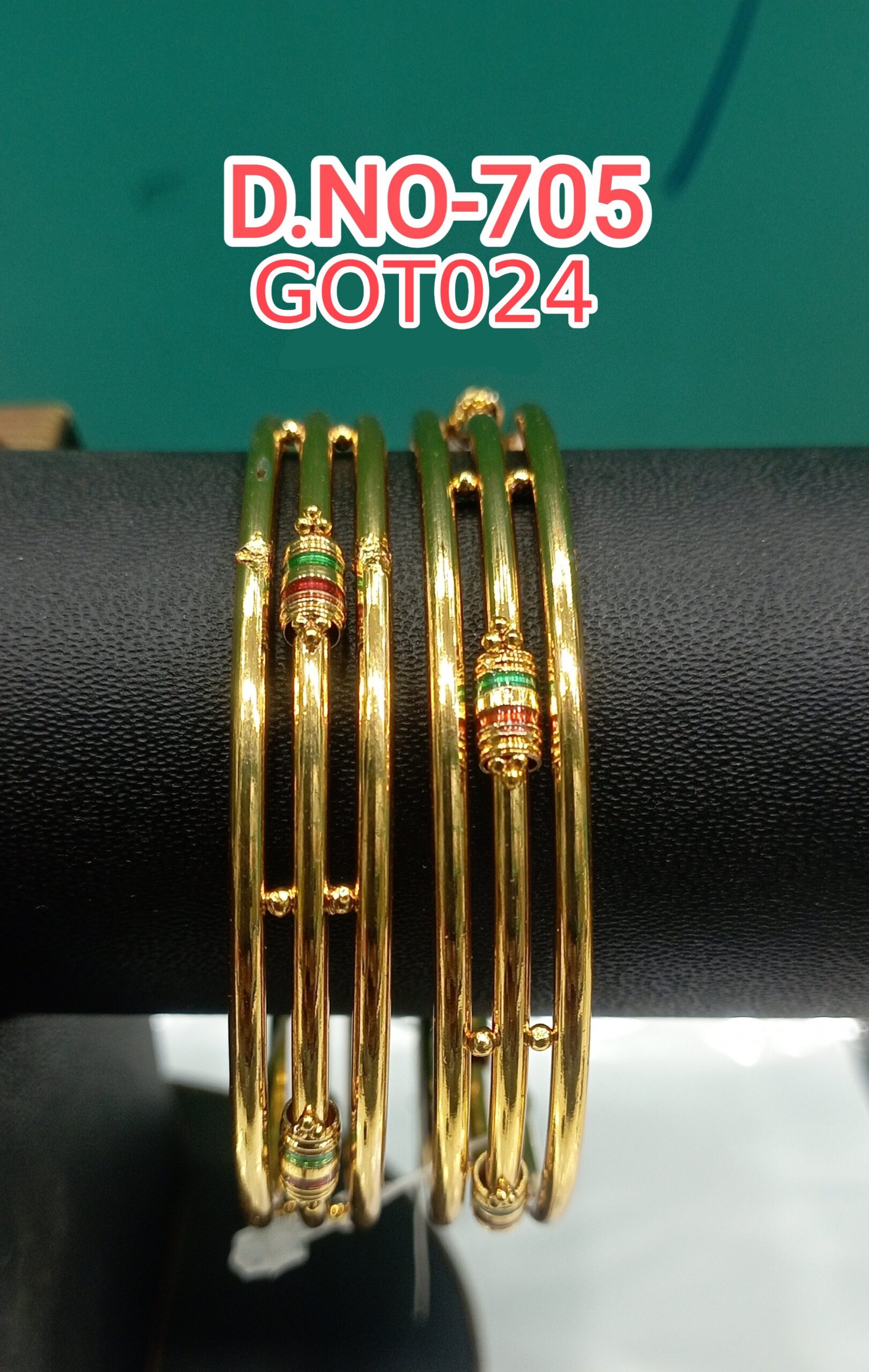 One Gram Gold Plated Traditional 4 Pcs Real Gold Design Bangles 705/GOT