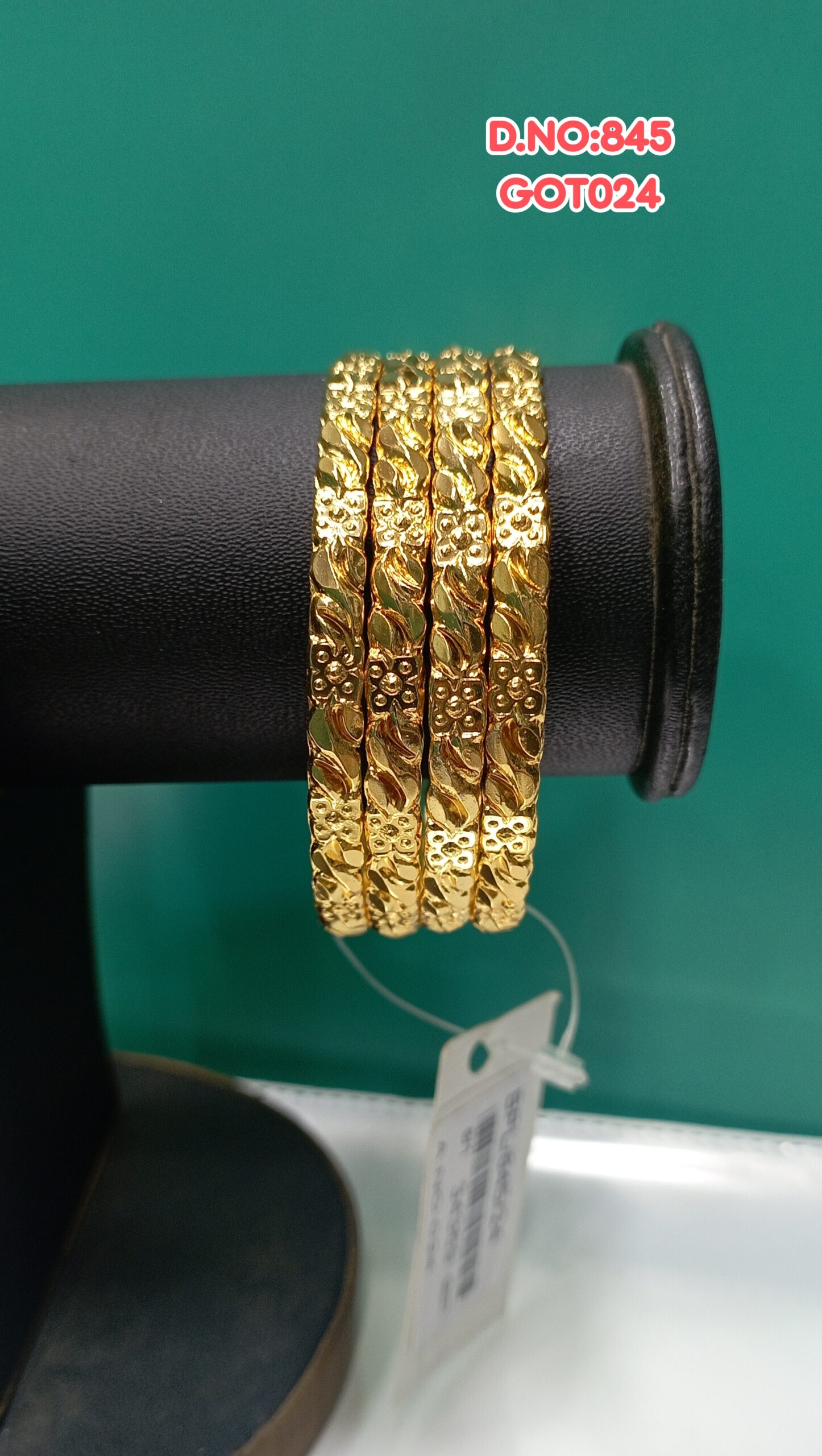 One Gram Gold Plated Traditional Flower Designed Real Gold Model Bangles 845/GOT