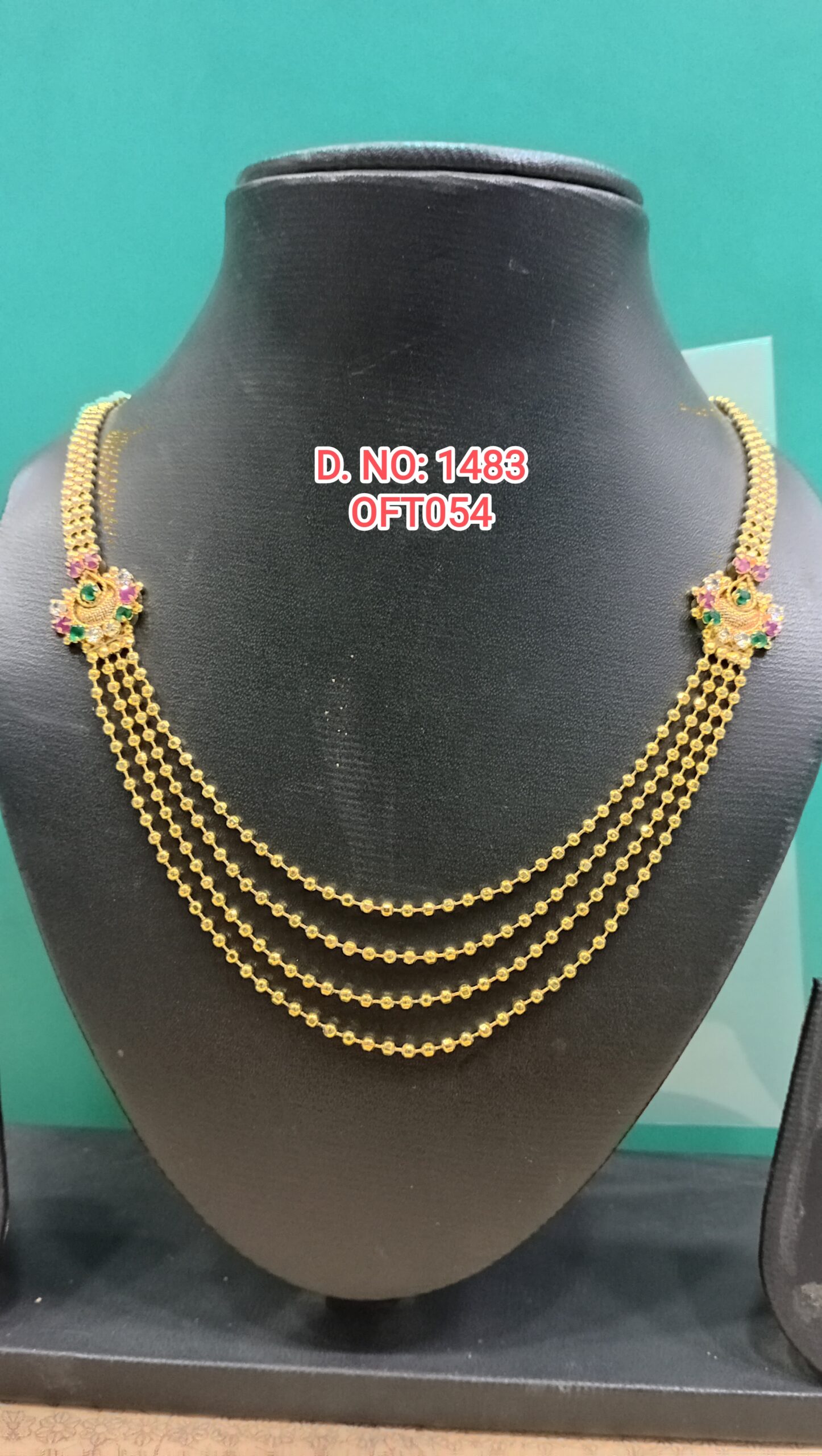 One Gram Gold Plated Traditional Gold Necklace BALL Chain 4LINE Designs 1483/OFT