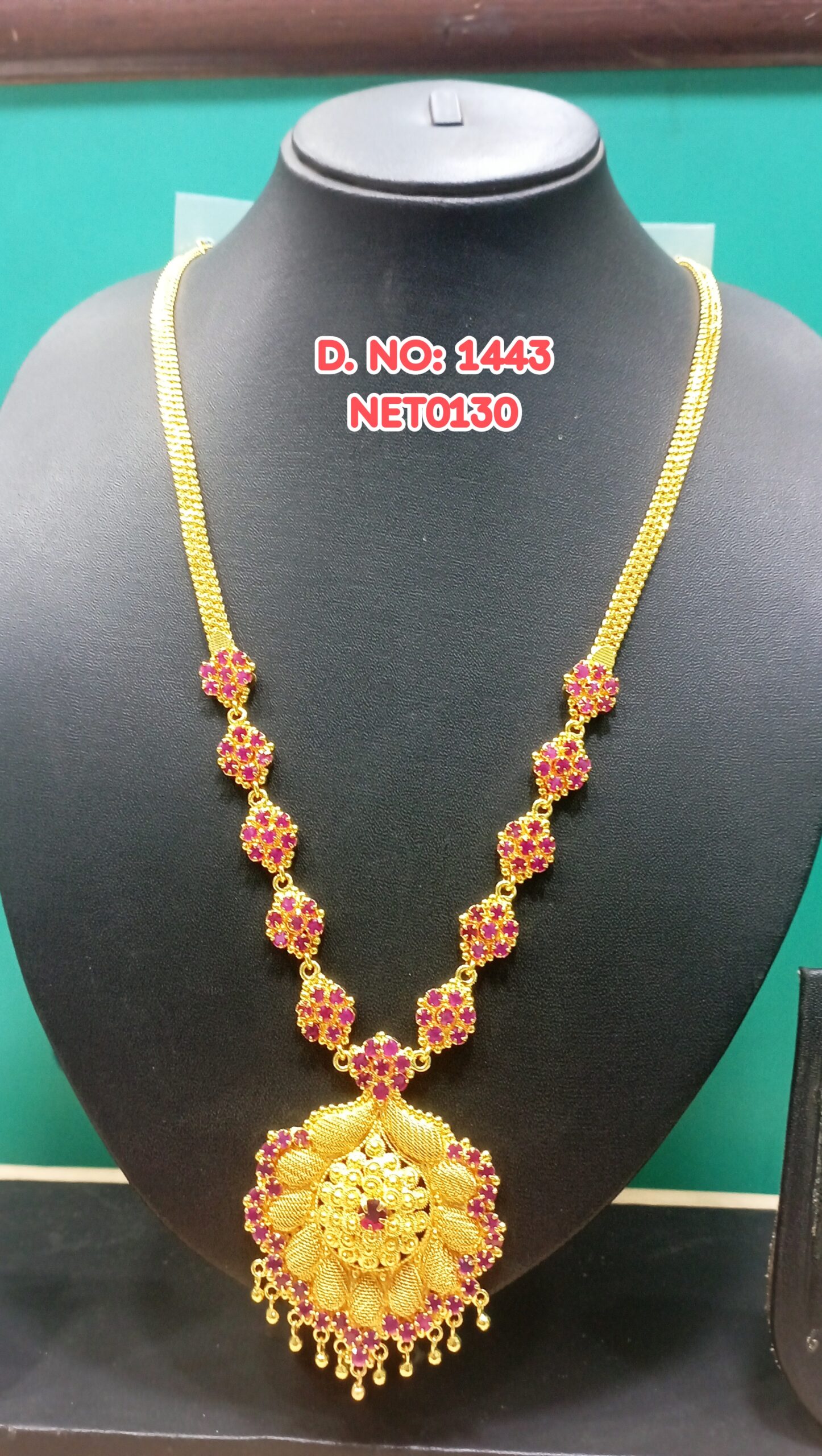 One Gram Gold Plated Traditional Grand Gold AD Stone Haram Designs 1443/NET