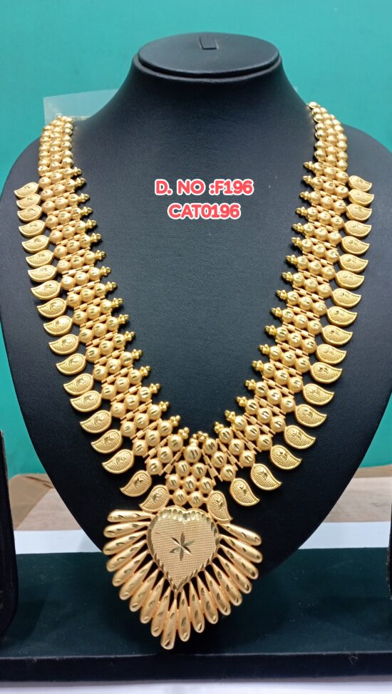 One Gram Gold Plated Traditional Grand Gold KERALA THREE LINE LAYER MANGO Haram Designs F196/CAT