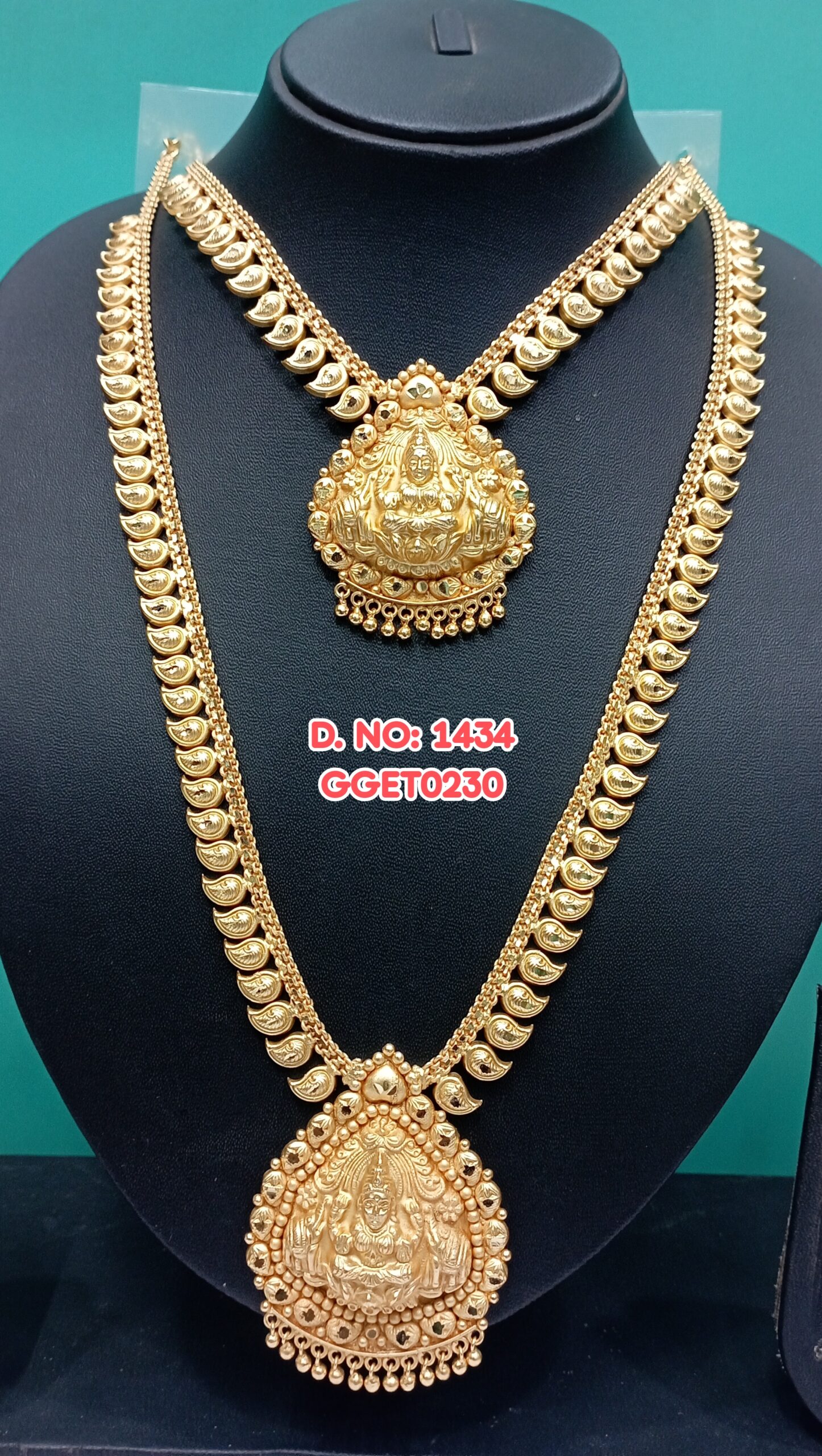 One Gram Gold Plated Traditional Grand Long Haram Necklace Set LAKSHMI Designs 1434/GGET