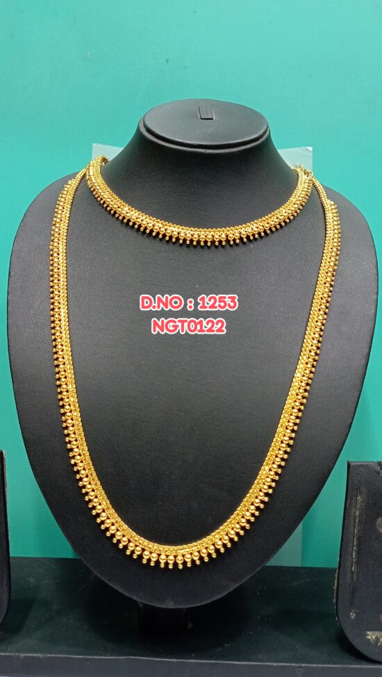 One Gram Gold Plated Traditional Grand Long Haram Necklace Set SIMPLE Designs 1253/NGT
