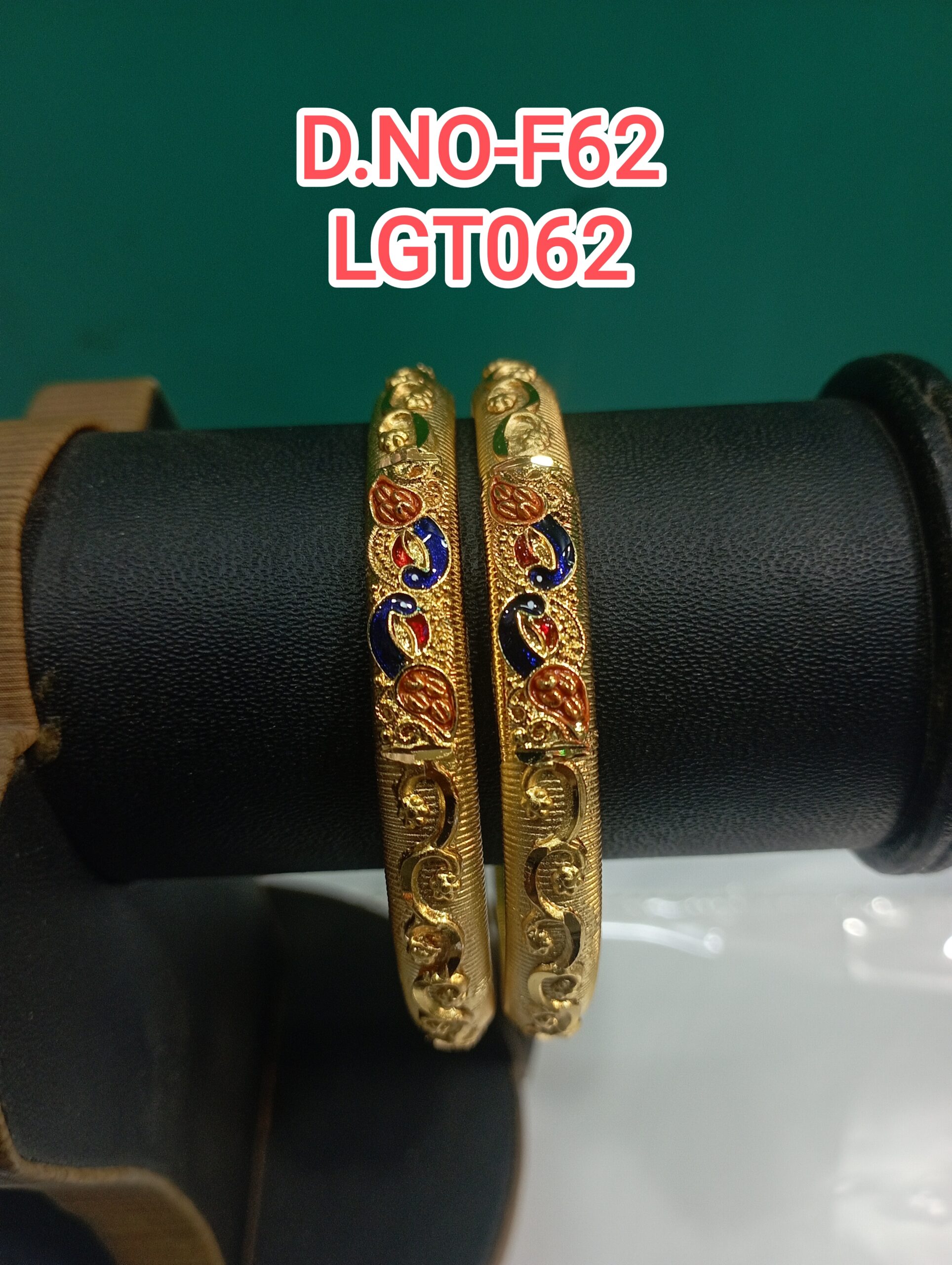 One Gram Gold Plated Traditional MAYIL Enamel FORMING Bangles F62/LGT