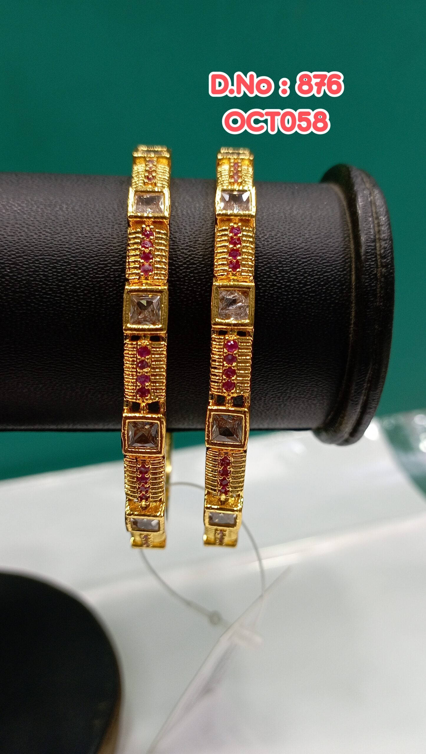 One Gram Gold Plated Traditional RUBY WHITE AD STONE Gold Design Bangles 876/OCT