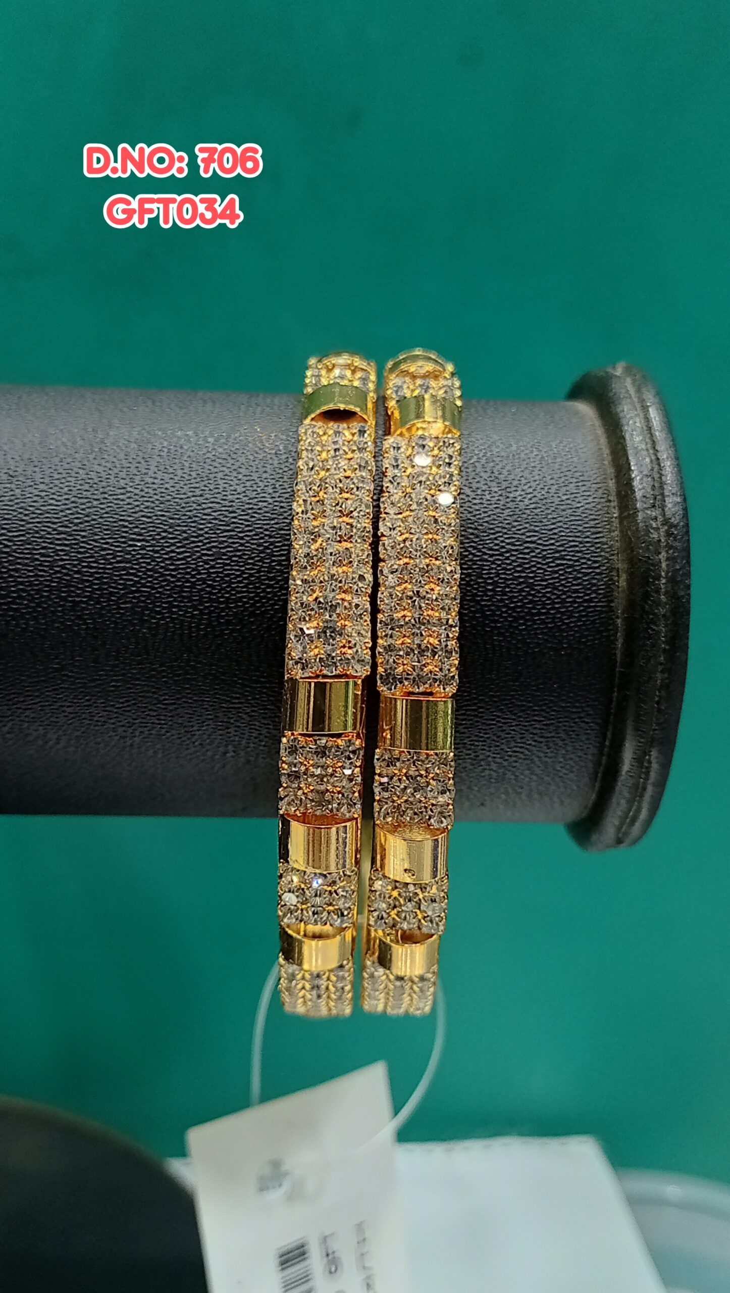 One Gram Gold Plated Traditional WHITE STONE Gold Bangles 706/GFT